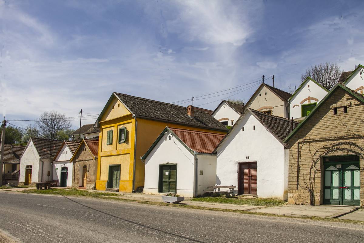 A pincesor a falu határában a domboldalba ágyazódik, a pincék „fűrészfogszerű” elrendezésben szorosan egymás mellé tapadnak. Az alsó sor feletti utcában, a dombon, „egy emelettel magasabban”, megismételték e sajátos pinceépítési módot. E két sorban az épületek közvetlenül egymás mellé sorolódnak, de nem zártsorú beépítéssel, hanem 50-150 cm távolságra egymástól. A présházak néha hosszanti – az utcára merőleges – falukkal egymással párhuzamosan, néha az utca kanyarulatát követve hátrafelé szélesedő közökkel épültek. A keskenyebb hézagok pince felöli falait kőfalazatú támfalak kötik össze, a szélesebb helyeken tereplépcsők vezetnek a másik sorra. A présházak egyszerű nyeregtetőkkel épültek az utcára merőleges gerinccel. Ez alól a szabályszerűség alól csak néhány épület kivétel.